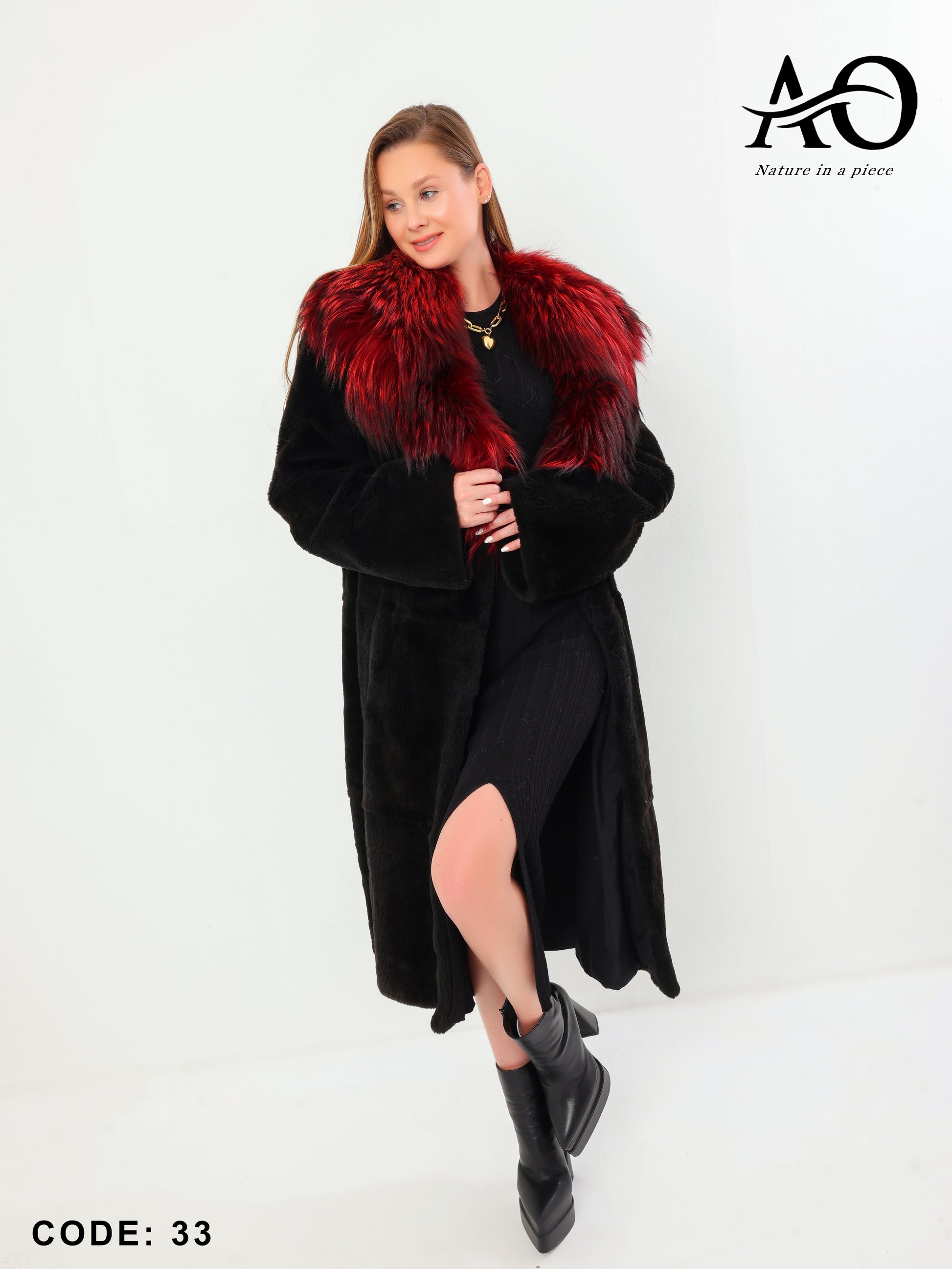 A striking blend of elegance and bold luxury — this Black Shaved Mink Fur Coat features a stunning Red Fox fur collar, crafted from premium-quality fur sourced from Greece.